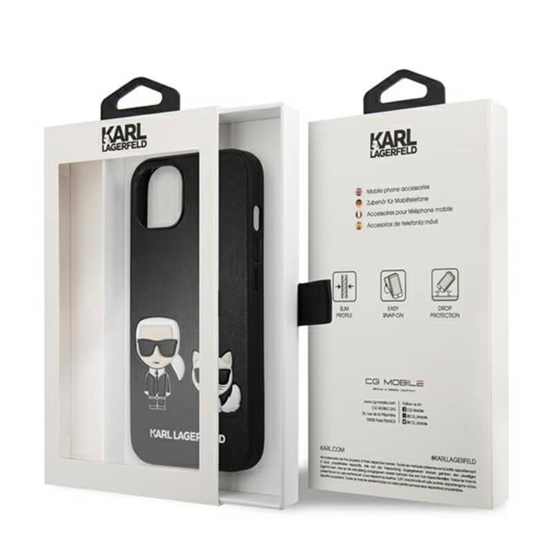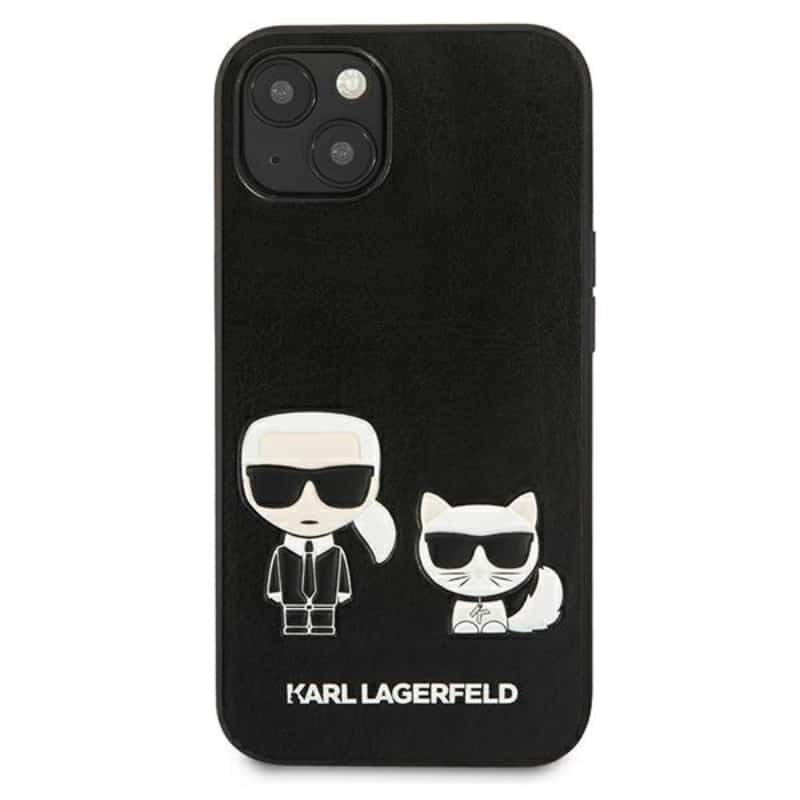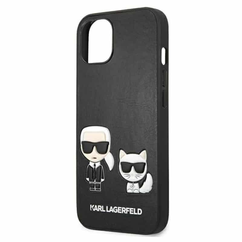 Karl Lagerfeld PU oda Karl & Choupette Reljefinis dėklas, skirtas iPhone 13 (juodas)