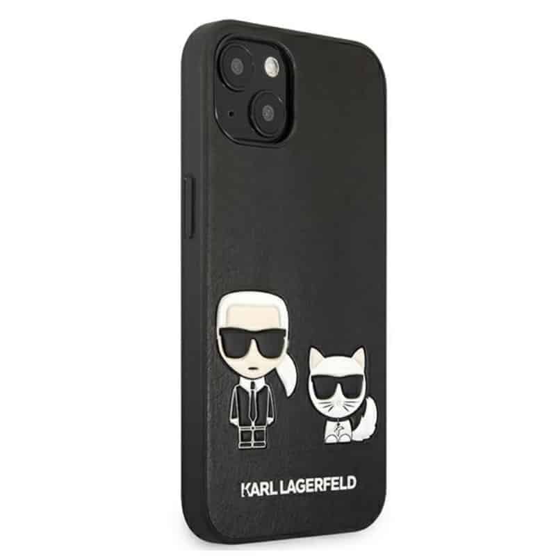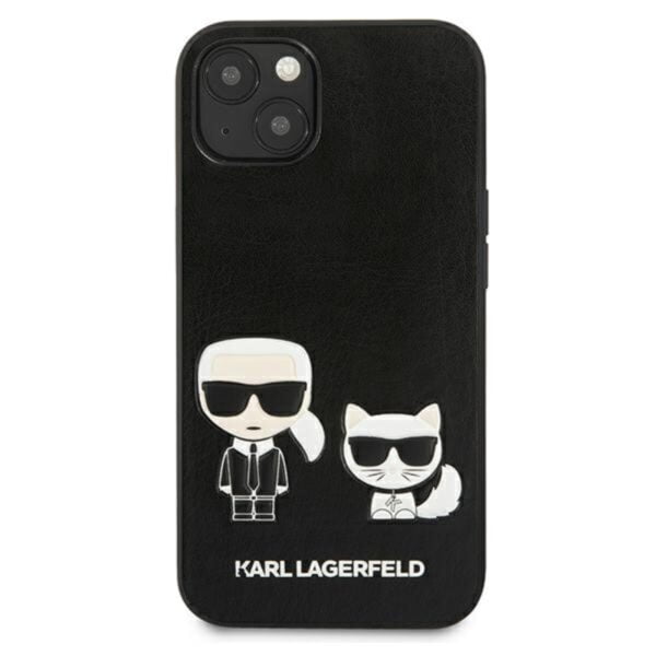 Karl Lagerfeld PU oda Karl & Choupette reljefinis dėklas, skirtas iPhone 13 Mini (juodas)