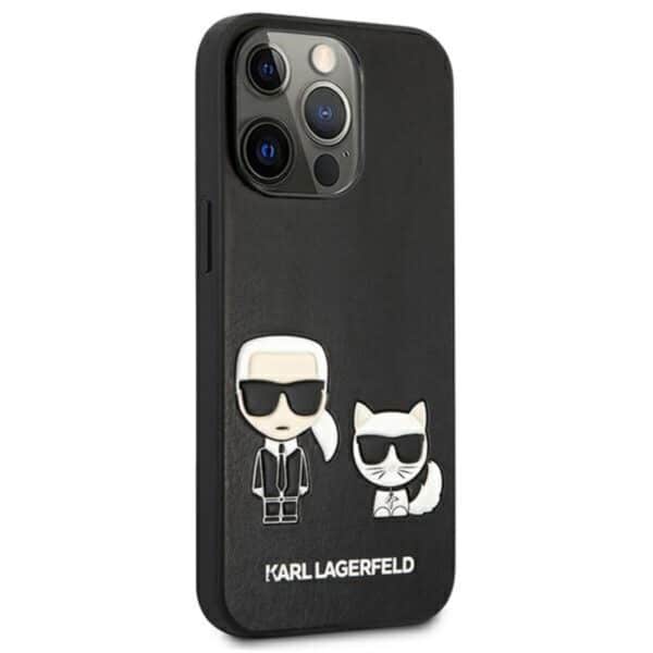 Karl Lagerfeld PU oda „Karl & Choupette“ reljefinis dėklas, skirtas „iPhone 13 Pro Max“ (juodas)