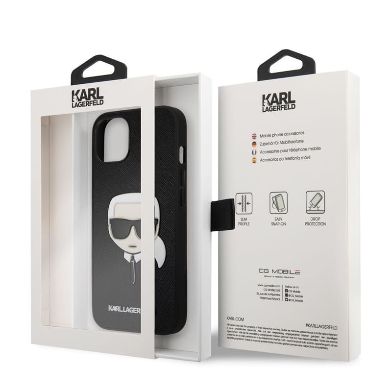 Karl Lagerfeld Saffiano Ikonik Karl’s Head – dėklas, skirtas iPhone 13 Mini (juodas)