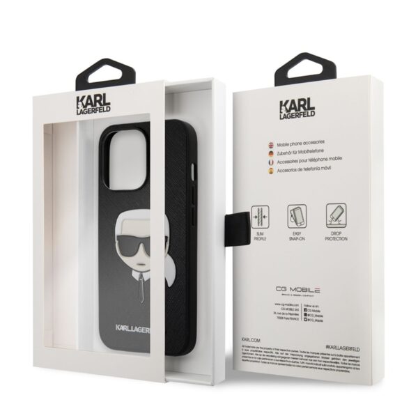Karl Lagerfeld Saffiano Ikonik Karl’s Head – dėklas, skirtas iPhone 13 Pro Max (juodas)