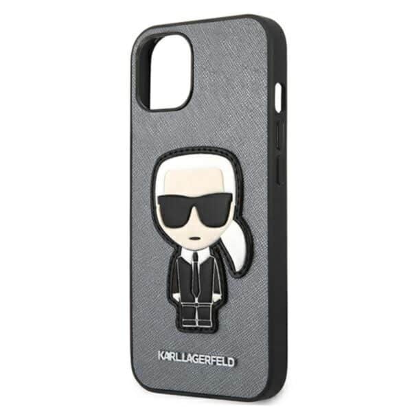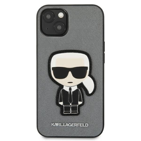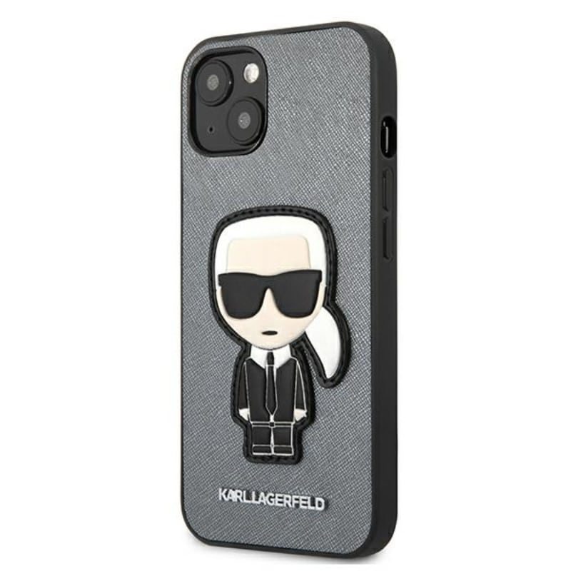 Karl Lagerfeld Saffiano Ikonik Patch – dėklas, skirtas iPhone 13 (sidabras)