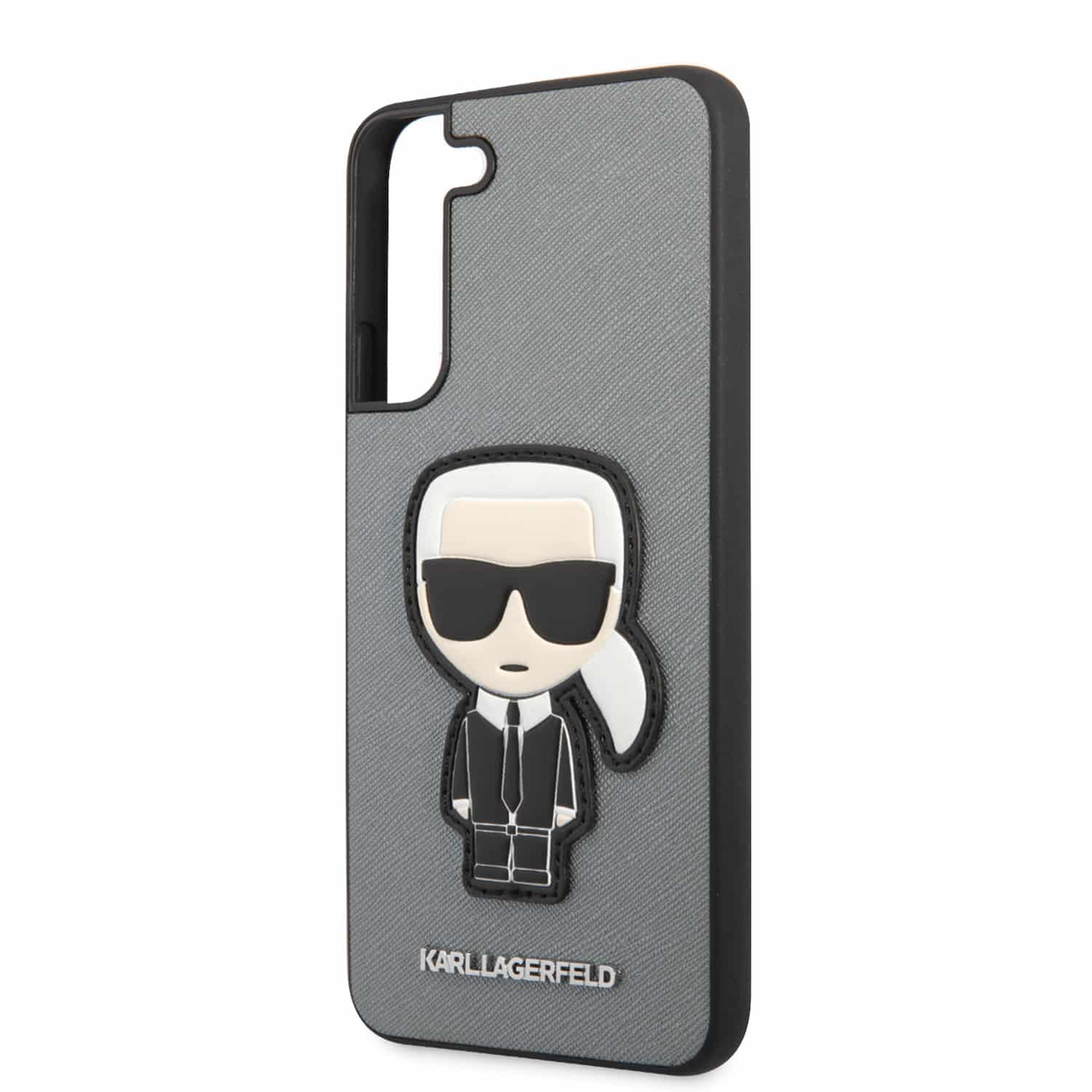 Karl Lagerfeld Saffiano Ikonik Patch – dėklas, skirtas Samsung Galaxy S22+ (sidabrinis)