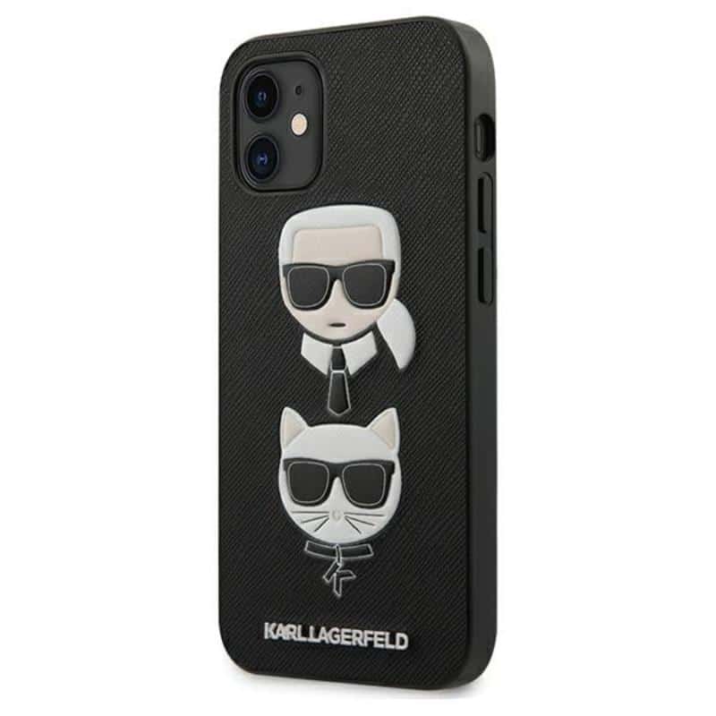 Karl Lagerfeld Saffiano Karl & Choupette Heads – dėklas, skirtas iPhone 12 mini (juodas)