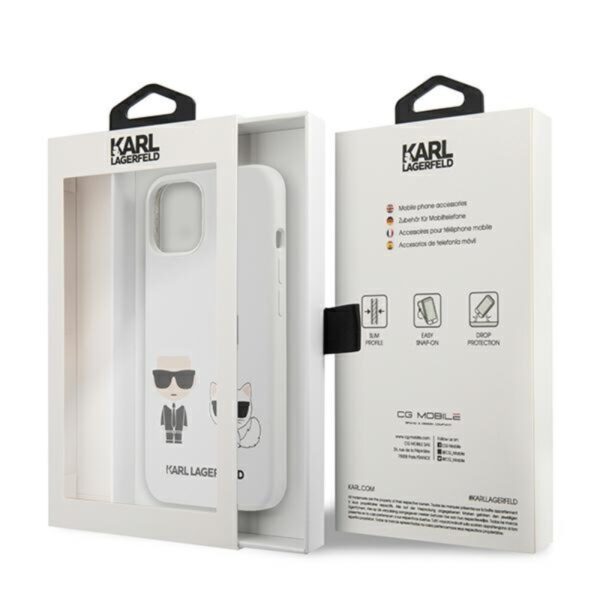 Karl Lagerfeld Silicone Karl & Choupette – iPhone 13 mini dėklas (baltas)
