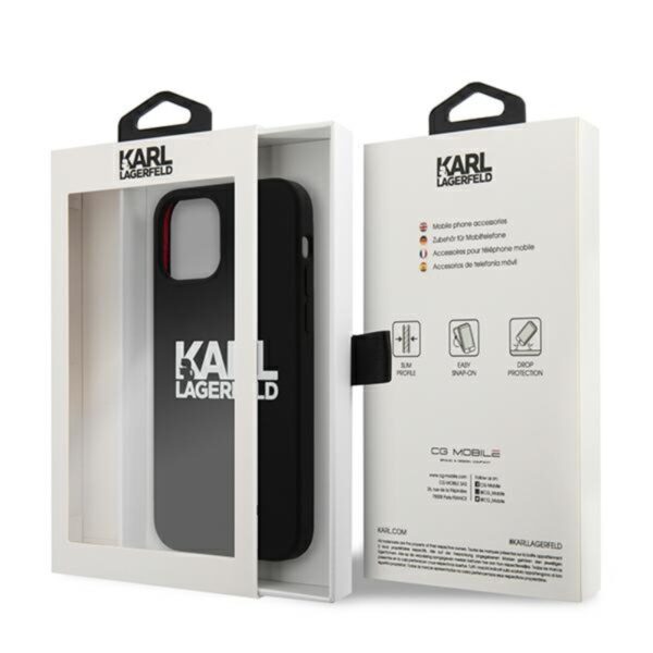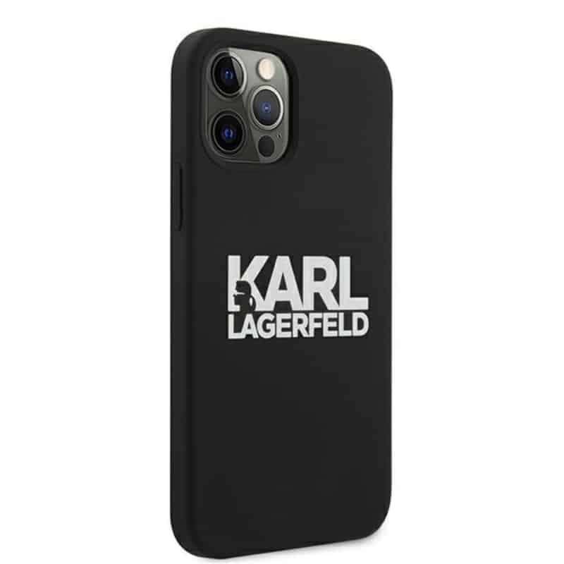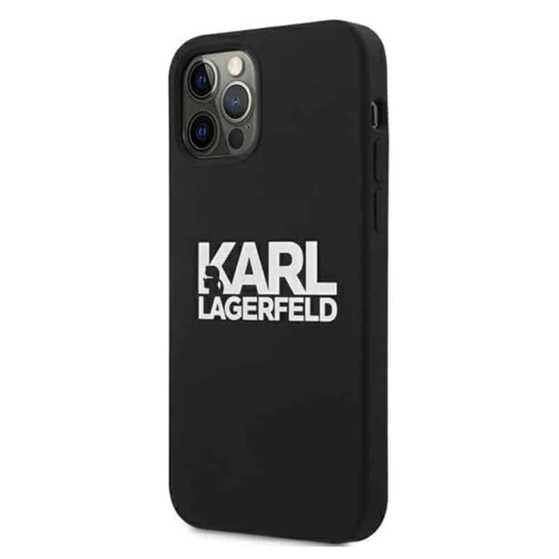 Karl Lagerfeld Silicone Stack logotipas – dėklas, skirtas iPhone 12 / iPhone 12 Pro (juodas)