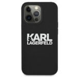 Karl Lagerfeld Silicone Stack logotipas – dėklas, skirtas iPhone 13 Pro (juodas)