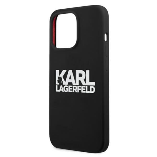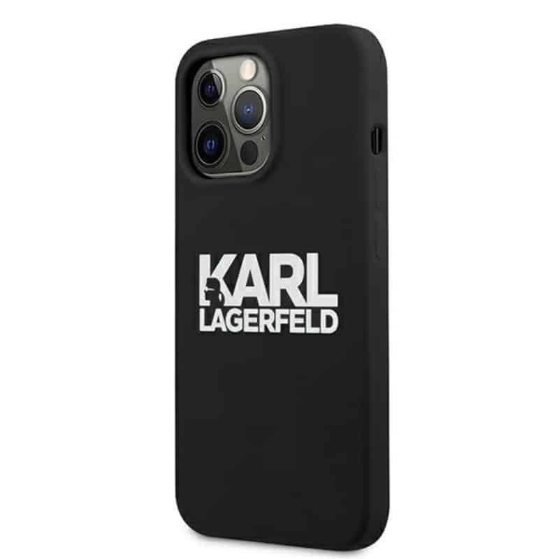 Karl Lagerfeld Silicone Stack logotipas – dėklas, skirtas iPhone 13 Pro Max (juodas)