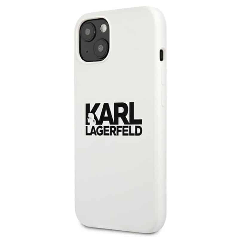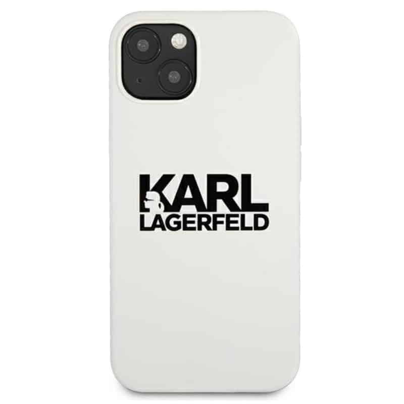 Karl Lagerfeld Silicone Stack logotipas – iPhone 13 mini dėklas (baltas)