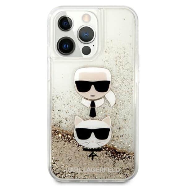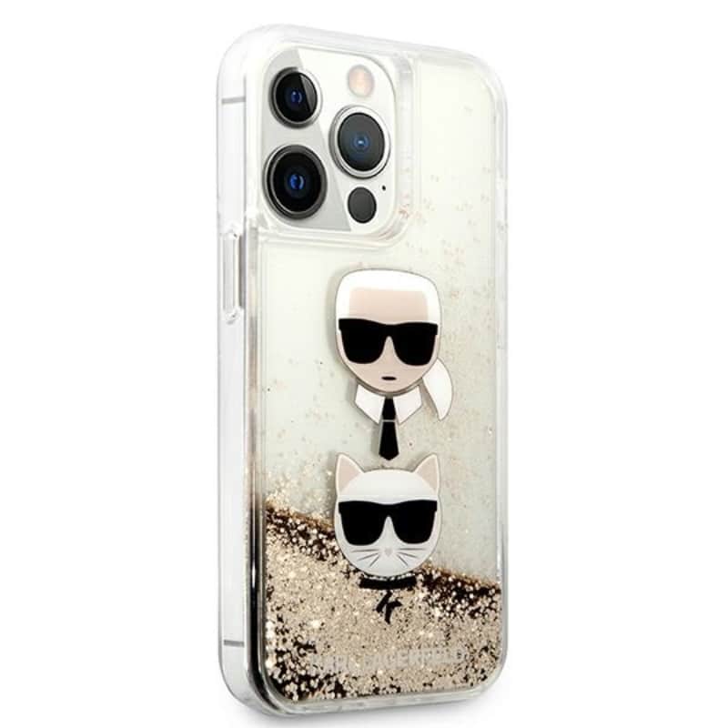 Karl Lagerfeld skysti blizgučiai Karl & Choupette Head – dėklas, skirtas iPhone 13 Pro (auksinis)