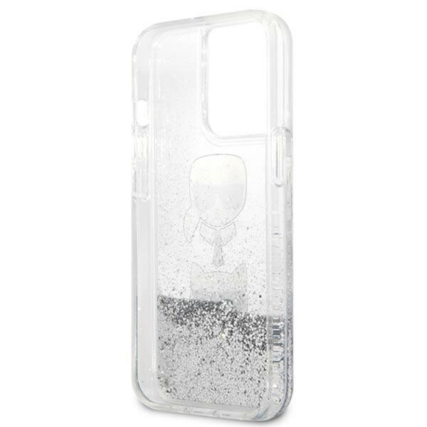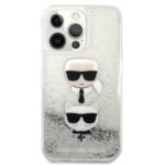 Karl Lagerfeld skysti blizgučiai Karl & Choupette Head – dėklas, skirtas iPhone 13 Pro (sidabras)
