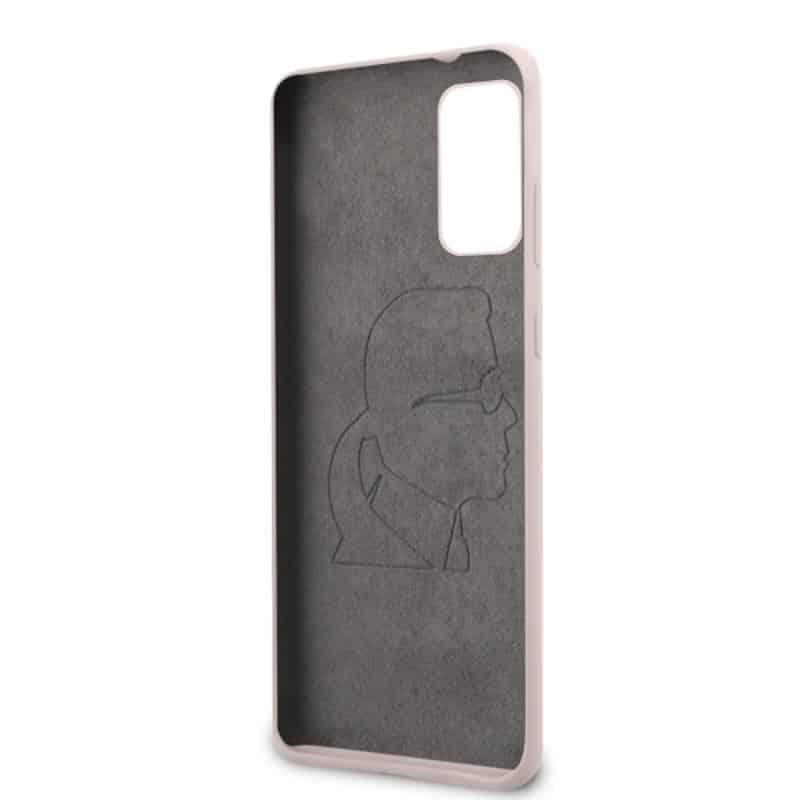 Karl Lagerfeld viso kūno silikoninis ikoninis dėklas – Samsung Galaxy S20+ (rožinis)