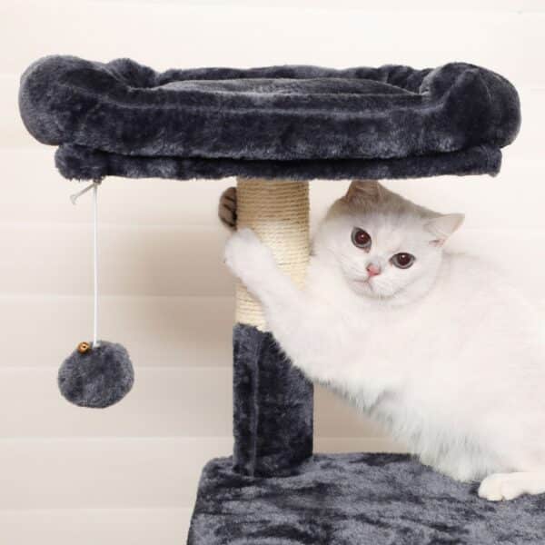 • Medžiaga: medžio drožlių plokštė (MDP), pliušas, sizalis, stulpas iš sustiprinto kartono