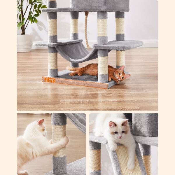 Visapusiškas komfortas: Visas katės medis aptrauktas minkštu pliušu, kuris užtikrina jaukų jaukumą.