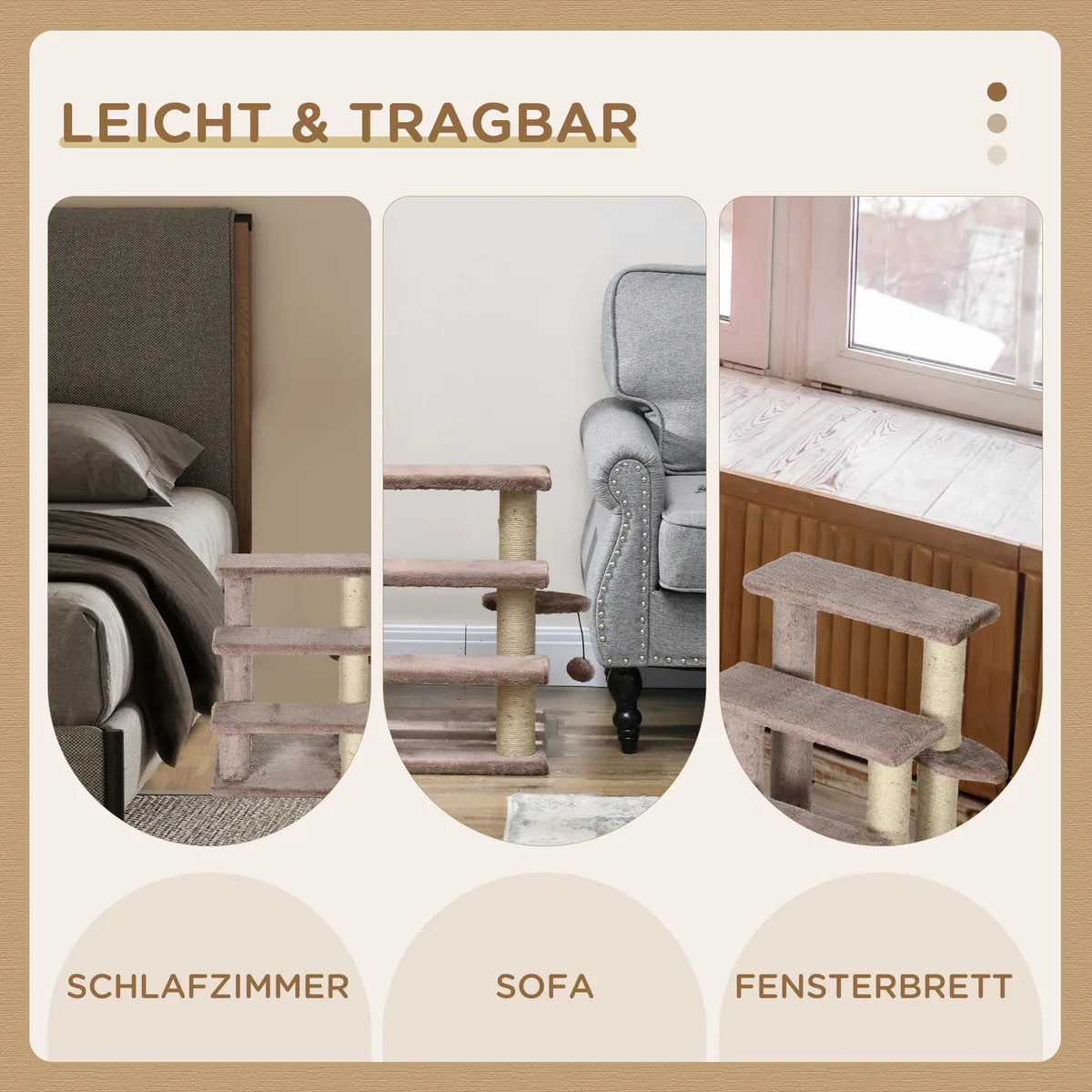 - ✔ Gyvūnų laiptus galima lengvai perkelti bet kur