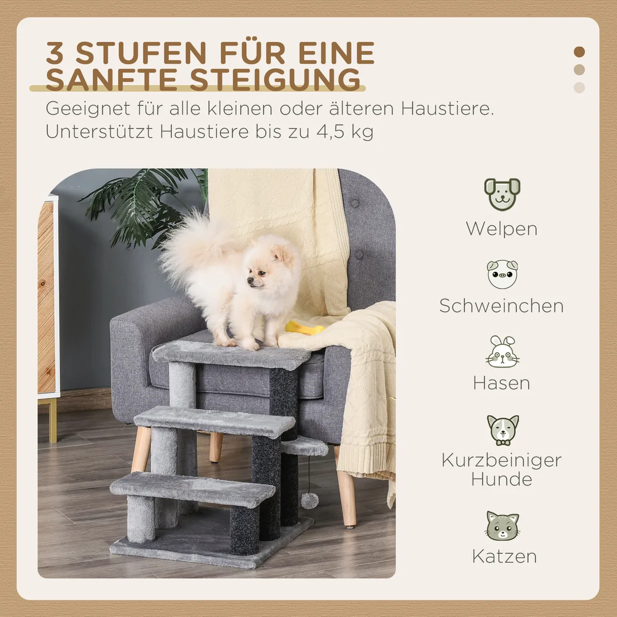 - ✔ Padeda jūsų augintiniams saugiai pasiekti aukštesnes vietas, kad išvengtų sužalojimų ir apsaugotų savo sveikatą