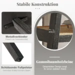 - Medžiagos: guminė mediena, MDF, fanera, PE rotangas