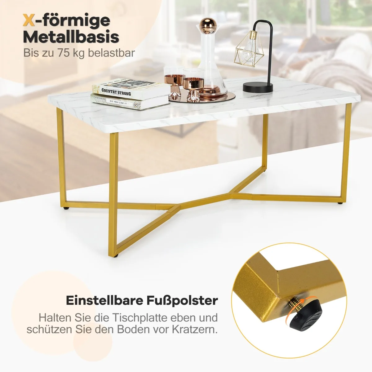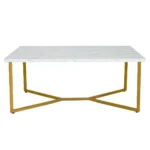 Kavos staliukas 107x60x45,5 cm baltos ir auksinės spalvos yra praktiškas sprendimas jūsų svetainei ar biurui. Jis pasižymi marmuriniu stalviršiu ir patvariu konstrukcijos pagrindu, tinkamu kasdieniam naudojimui.