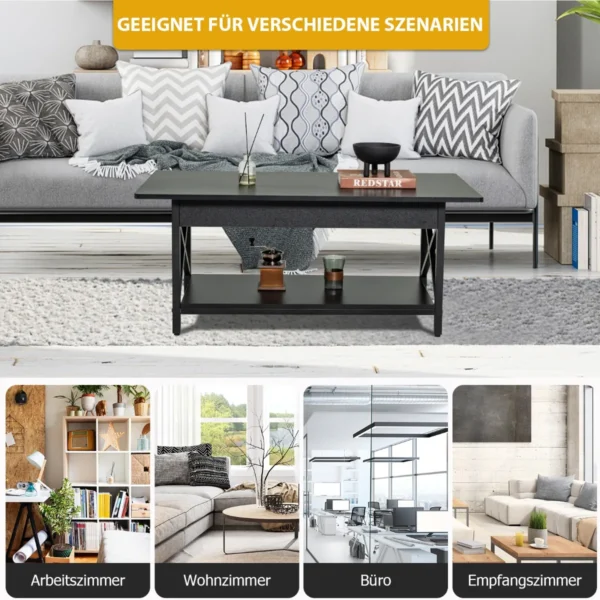 Kavos staliukas 110x60x48cm juodos spalvos – praktiškas ir funkcionalus sprendimas jūsų svetainei ar poilsio kambariui. Tvirtas metalinis rėmas ir medinis stalviršis užtikrina stabilumą ir ilgaamžiškumą. Dviejų lygių dizainas suteikia papildomos vietos daiktų laikymui.