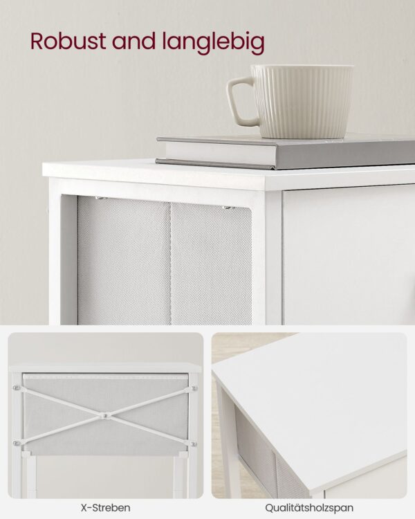 Pagamintas iš aukštos kokybės medžio drožlių plokštės, plieno ir neaustinio audinio, šis staliukas yra tvirtas ir ilgaamžis. Jo svoris siekia 3,7 kg, todėl lengva perkelti pagal poreikį.