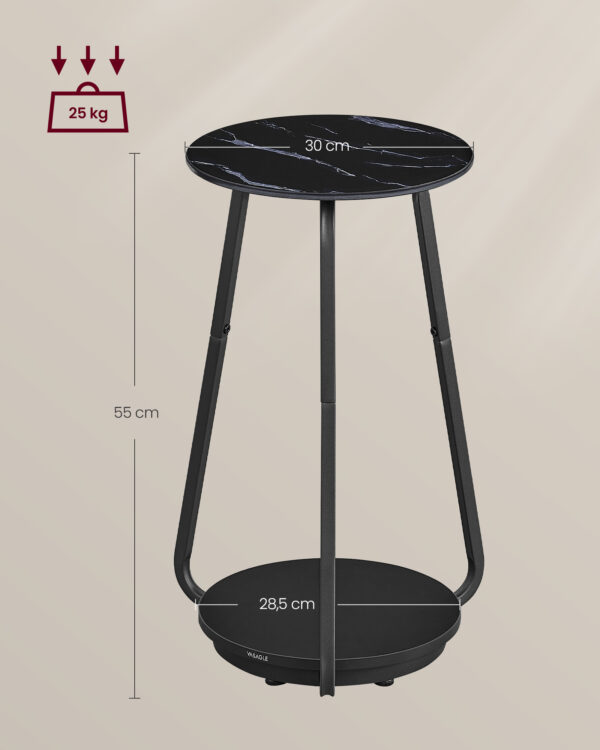 Šis elegantiškas kavos staliukas, kurio matmenys yra 30×55 cm, puikiai papildys jūsų interjerą. Jo marmuro juoda spalva suteikia prabangos ir modernumo jūsų namams.