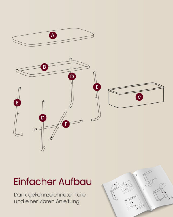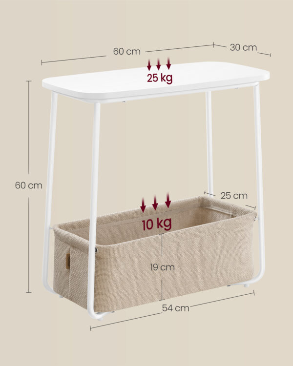 Staliukas taip pat turi praktišką krepšelį, kurio dydis yra 25 x 54 x 18 cm, puikiai tinkantį smulkiems daiktams laikyti.