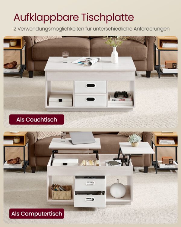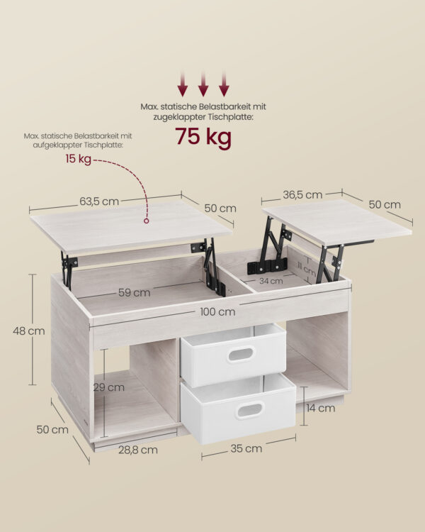 Šis kavos staliukas, kurio matmenys yra 50 x 100 x 48 cm, yra puikus pasirinkimas jūsų svetainės interjerui. Jo avižinių dribsnių smėlio spalva suteikia šilumos ir jaukumo jūsų namams.