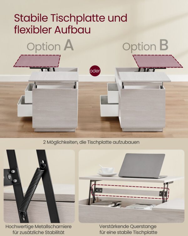 Pagamintas iš aukštos kokybės plieno ir medžio drožlių plokštės, šis staliukas yra tvirtas ir ilgaamžis. Jo svoris siekia 27,5 kg, o bendras maksimalus statinis apkrovimas yra 75 kg.