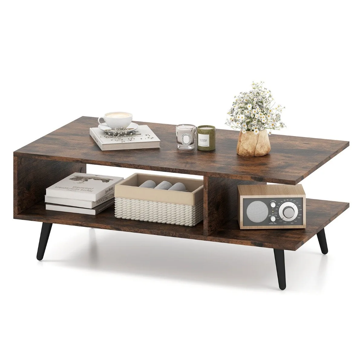 Kavos staliukas 80x45x30cm, rudos spalvos, puikiai tinka bet kokiai gyvenamajai erdvei. Dviejų pakopų dizainas suteikia erdvią vietą daiktų laikymui, o tvirtos metalinės kojelės užtikrina stabilumą. Šis kavos staliukas yra praktiškas ir patogus kasdieniam naudojimui.