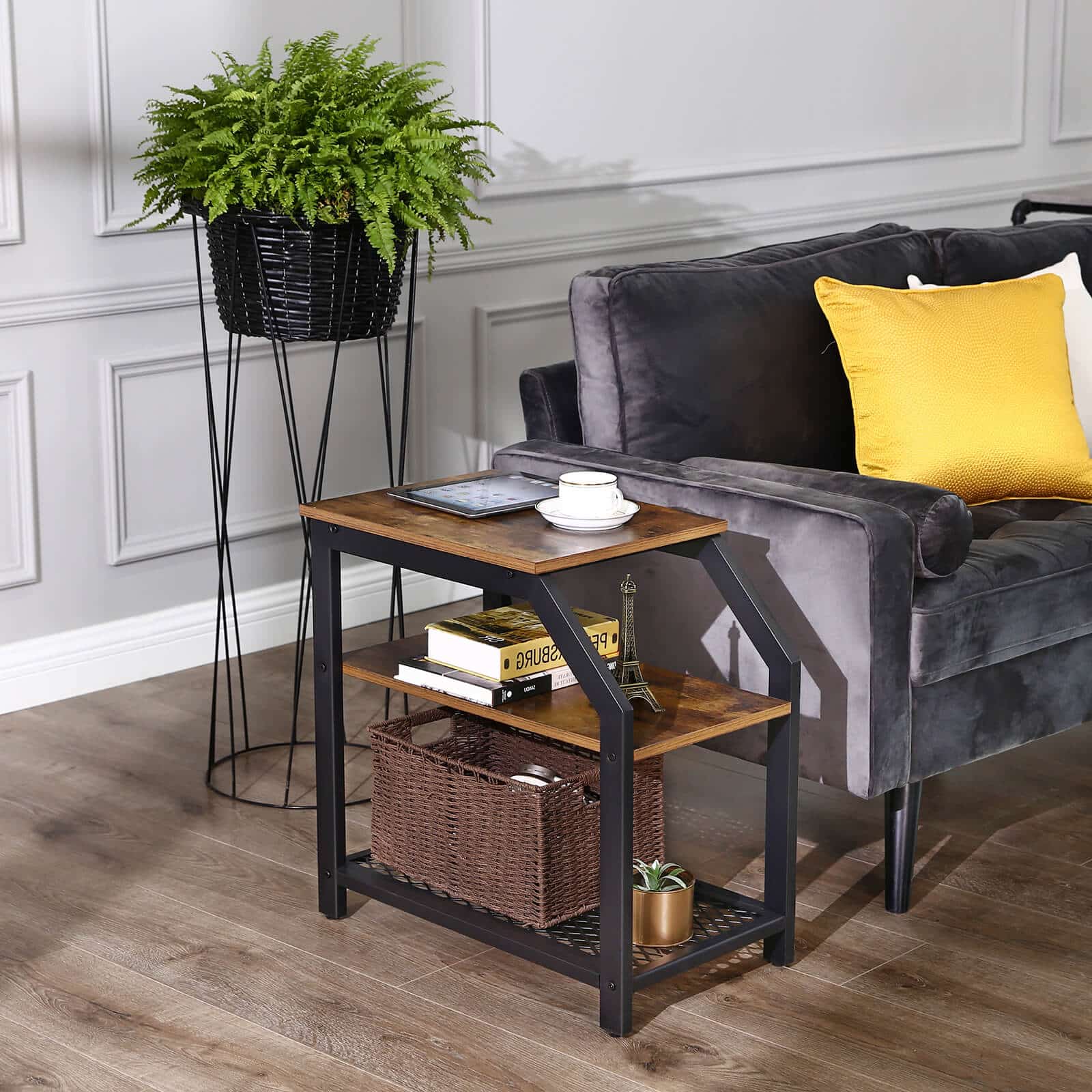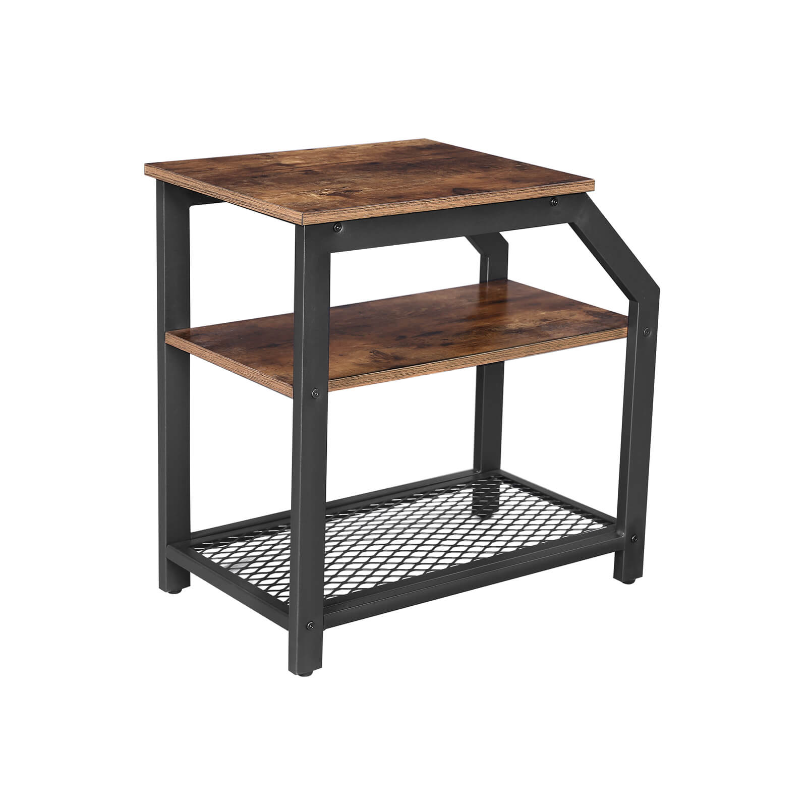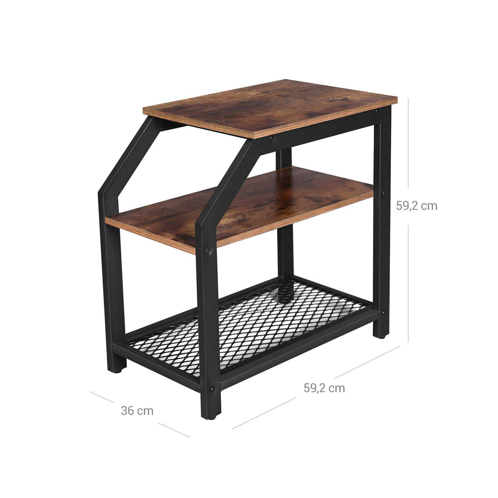 Nepriklausomai nuo to, ar jums reikia puikios vietos rytiniam kavos puodeliui, ar patogios vietos pasidėti jį prie sofos, šis pramoninio dizaino šoninis staliukas visada išsiskiria dėl pasvirusių kampų ir trijų lentynų.