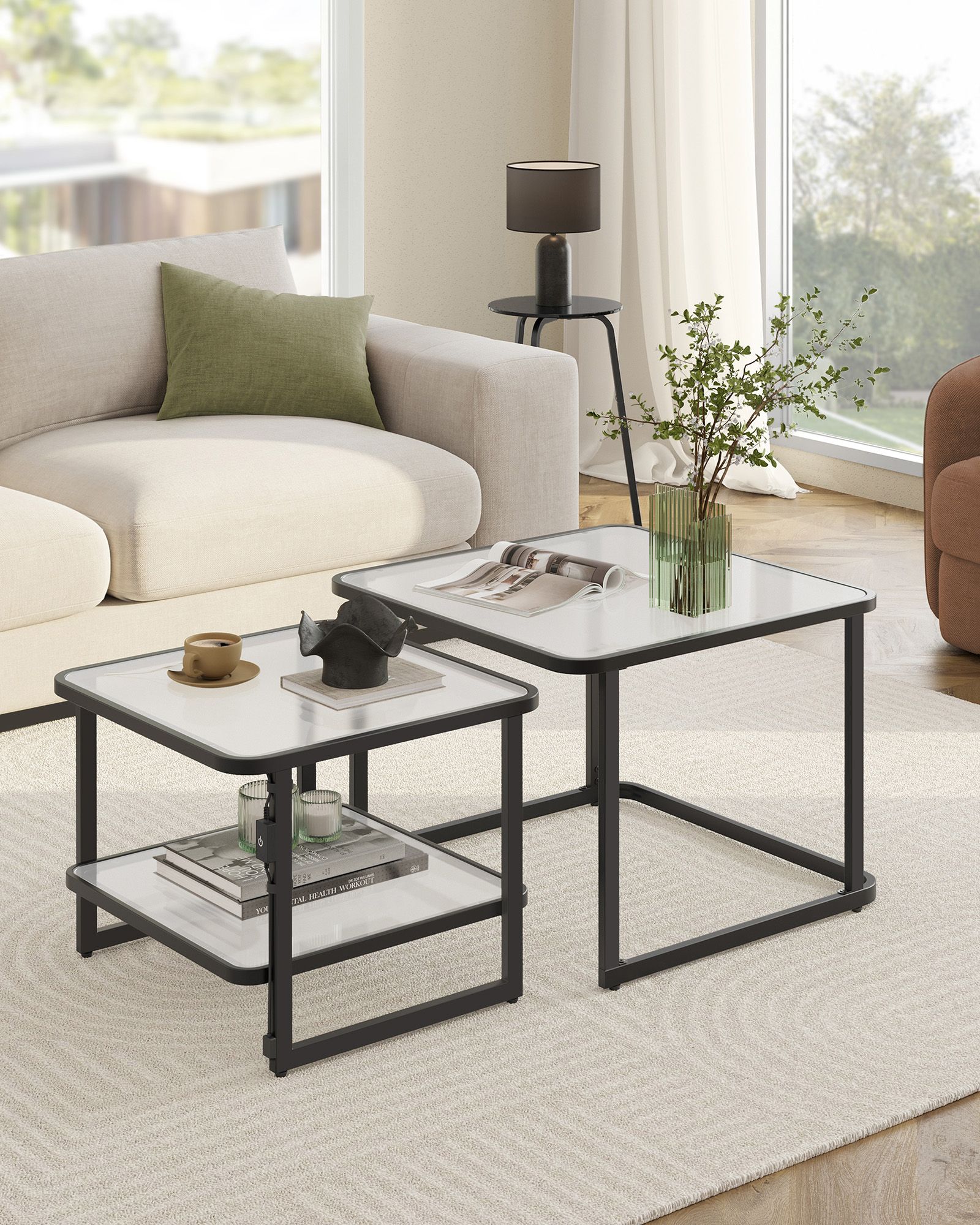 Šis kavos staliukų komplektas, juodos spalvos, yra puikus pasirinkimas jūsų namų interjerui. Jo modernus dizainas ir elegantiška juoda spalva suteikia stilingumo ir funkcionalumo jūsų gyvenamajai erdvei.