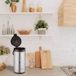 - Apsauginis užraktas: Leidžia užrakinti mygtuką, apsaugant vaikus nuo galimo nuplikymo karštais gėrimais.