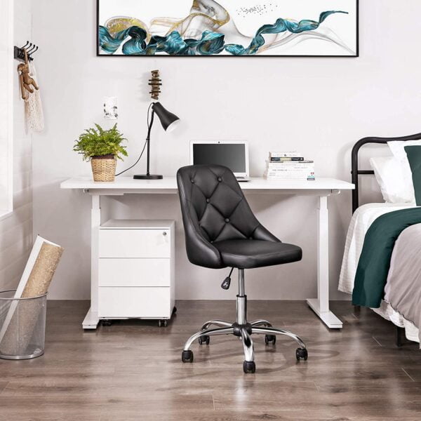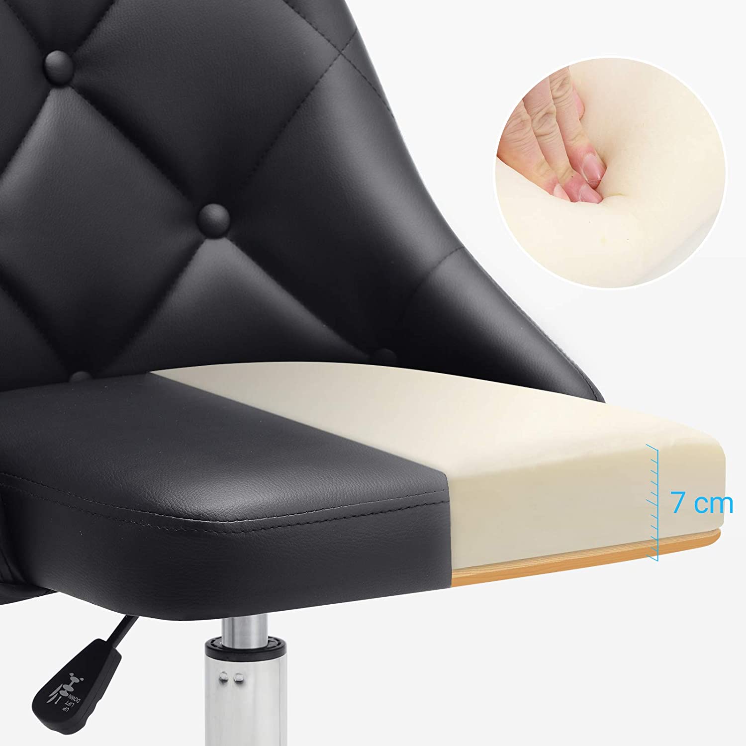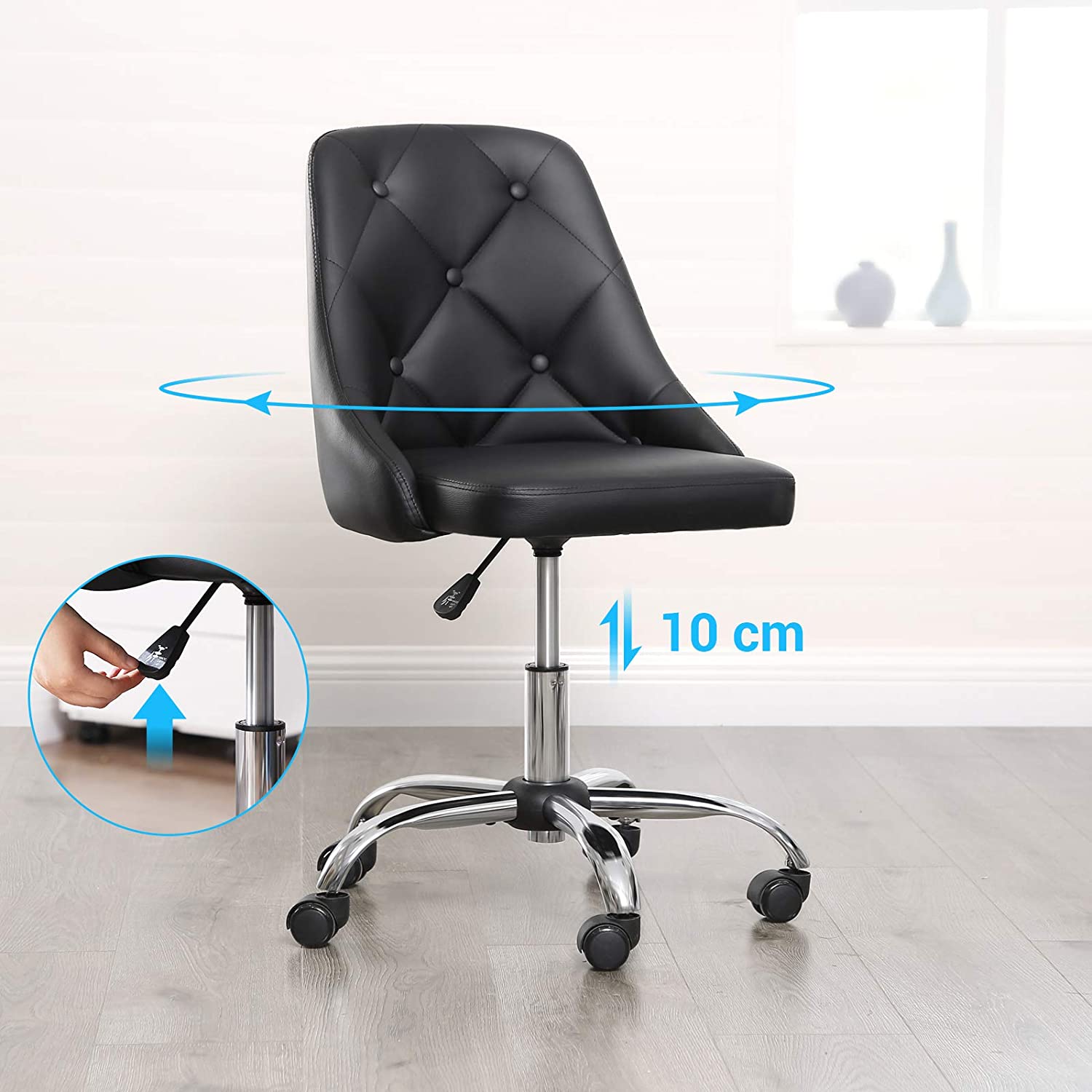 Gerai apgalvotos detalės: dygsniuotas atlošo dizainas suteikia šiai biuro kėdei unikalumo. PU ratukai užtikrina, kad galėtumėte sklandžiai slysti per savo darbo kambarį, svetainę, miegamąjį ir biurą. Dėl pridedamų atsarginių varžtų jūs visada gerai pasiruošę netikėtiems įvykiams.