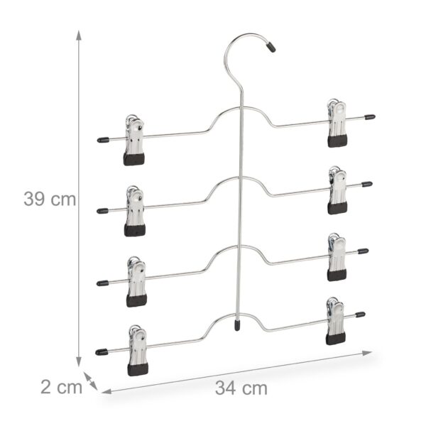 - Vietos taupymas: Kiekviena pakaba leidžia pakabinti iki 4 porų kelnių ar sijonų vieną ant kitos, taip maksimaliai išnaudojant spintos erdvę.
