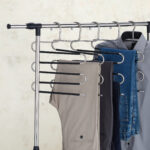 - Daugiafunkcionalumas: Pakabos puikiai tinka ne tik kelnėms, bet ir šalikams ar sijonams, kuriuos galima kabinti ant 5 strypų.