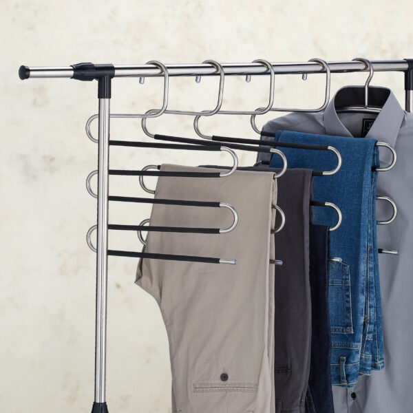 Įneškite tvarką ir stilių į savo garderobą su šiuo elegantišku ir funkcionaliu kelnių pakabų rinkiniu. Šios pakabos ne tik padės sutaupyti vietos, bet ir užtikrins, kad jūsų drabužiai visada atrodytų nepriekaištingai.