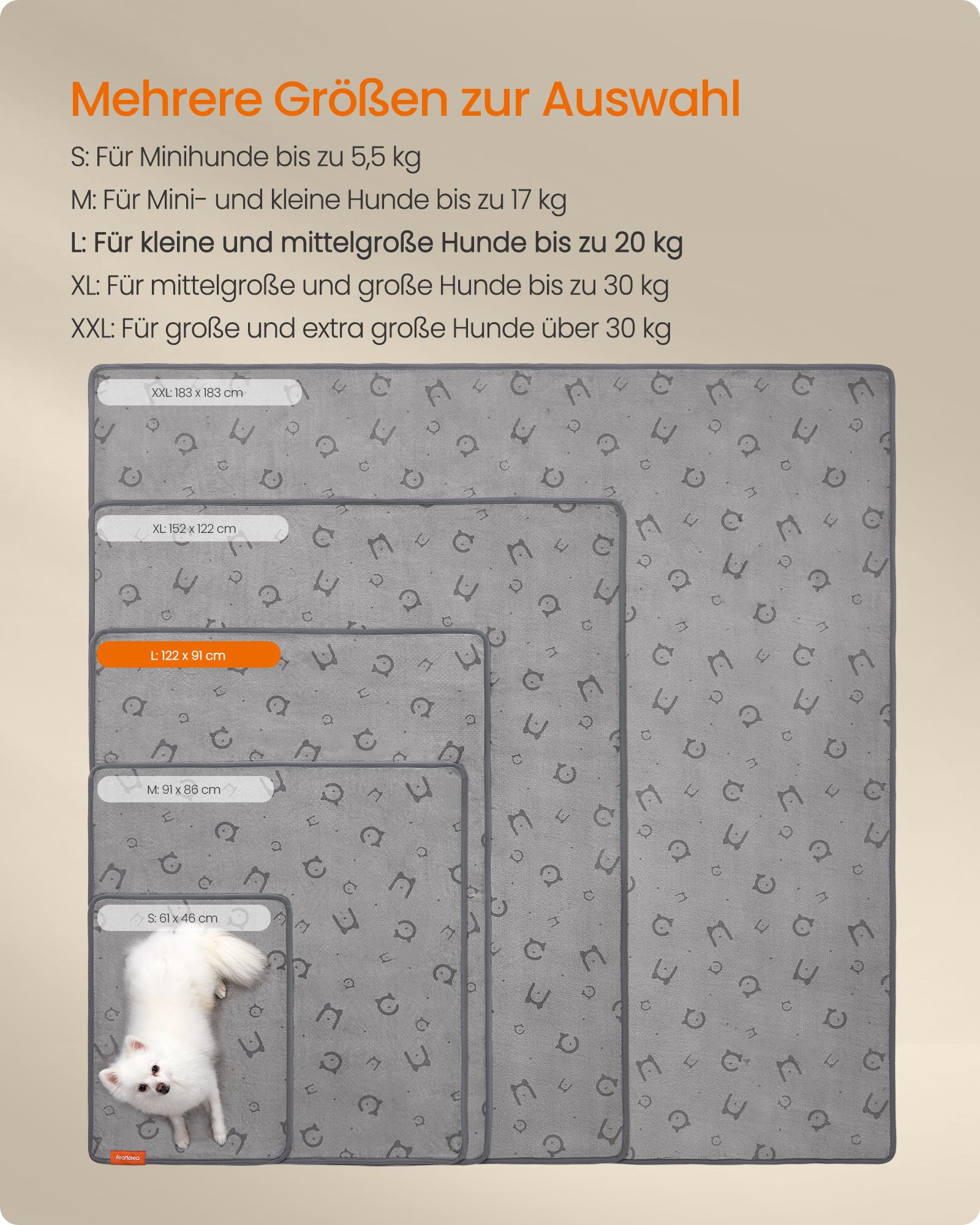 Šis kilimėlis šunims, kurio matmenys yra 122 x 91 cm, yra puikus pasirinkimas jūsų augintinio komfortui. Balandžio pilkos spalvos dizainas puikiai dera prie bet kokio interjero.