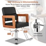 - Kėdė sukasi 360° su fiksavimo mechanizmu, leidžiančiu lengvai sukti klientus.