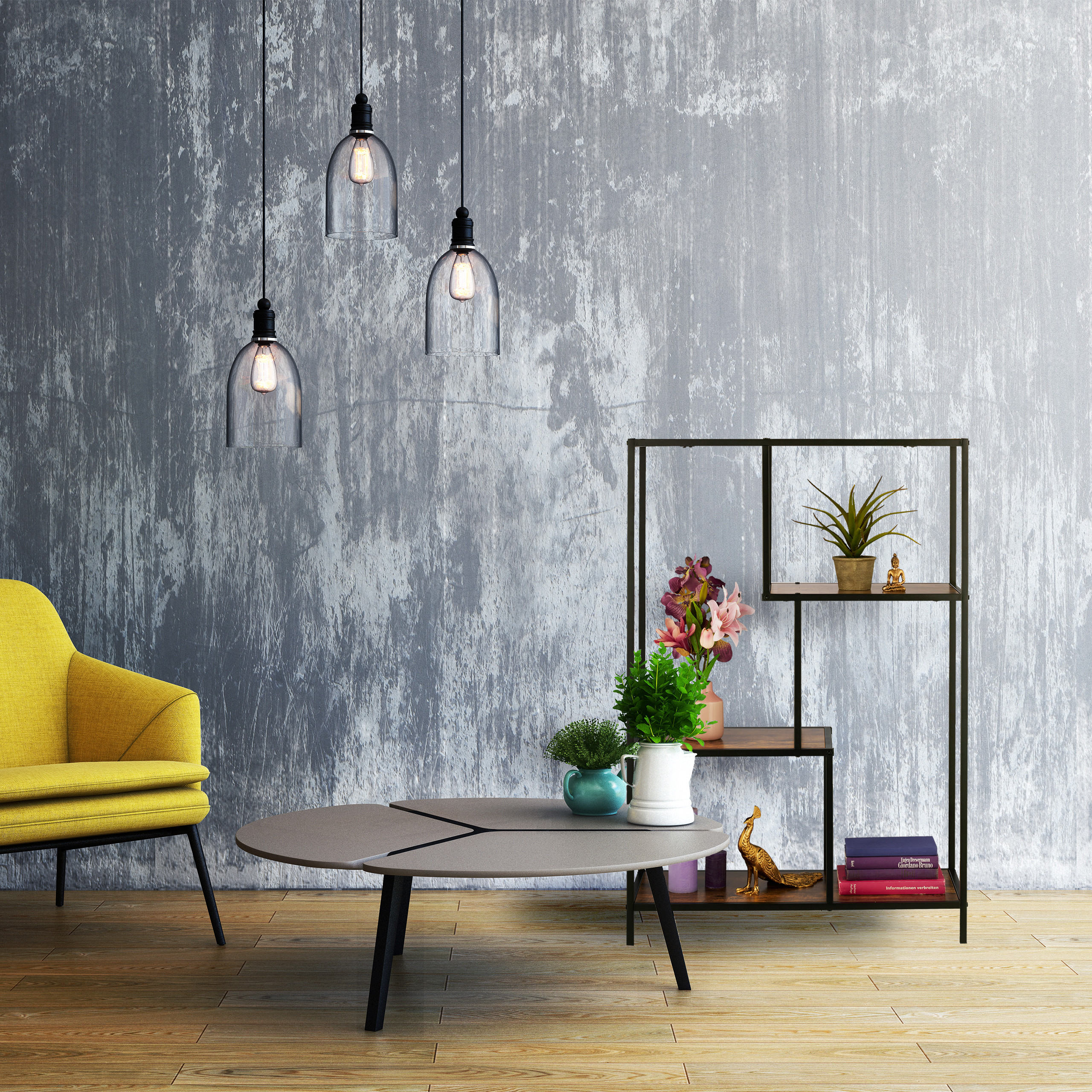 - Keturios erdvios lentynos suteikia pakankamai vietos knygoms, augalams, dekoracijoms ir šviestuvams.