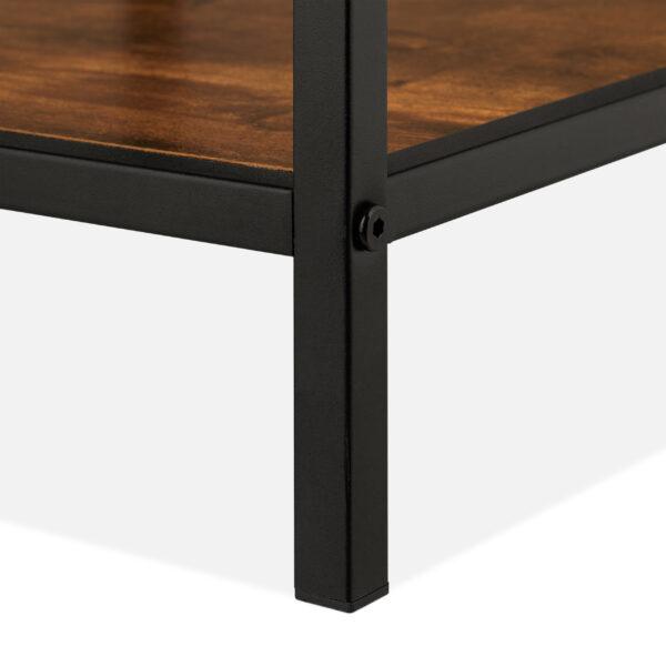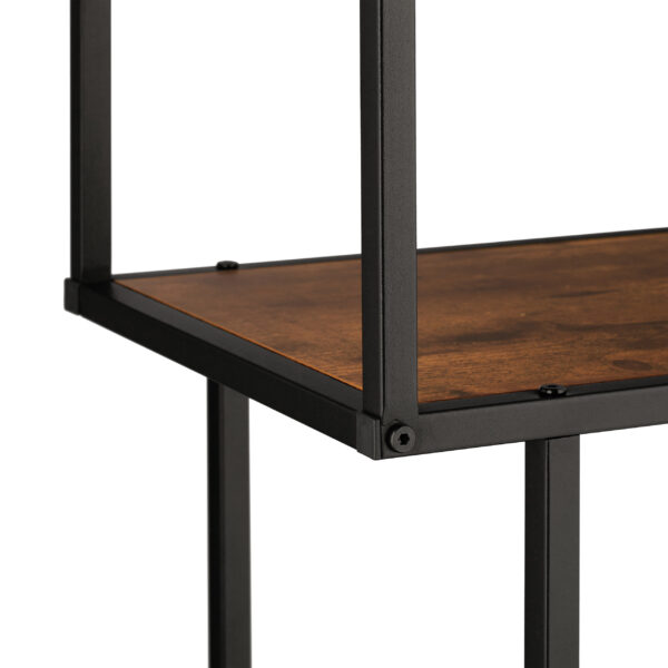 Lentyna pagaminta iš juodo metalo ir tamsiai rudos medienos, kas suteikia jai išskirtinį ir modernų pramoninį dizainą. Šis derinys ne tik atrodo stilingai, bet ir užtikrina konstrukcijos tvirtumą bei ilgaamžiškumą.