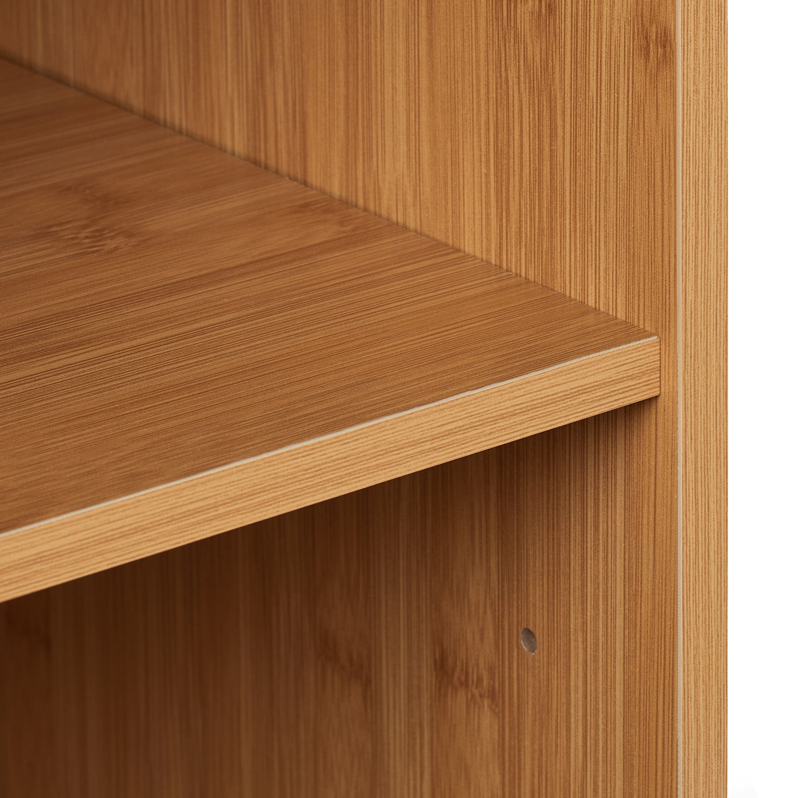 - Natūralus dizainas: Bambukinės kojelės ir grūdėta fanera suteikia lentynai natūralų ir šiltą išvaizdą, puikiai derančią prie įvairių interjero stilių.