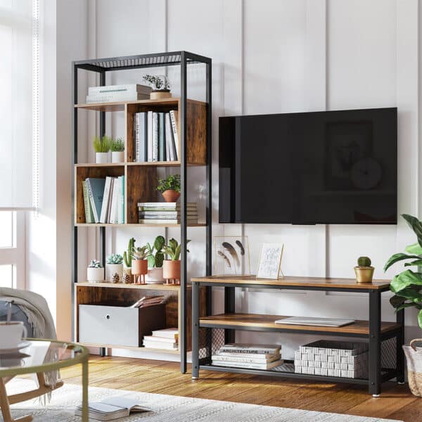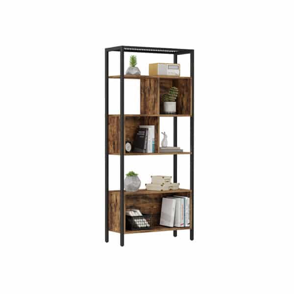 Ši knygų lentyna su plieniniu rėmu yra puikus pasirinkimas tiems, kurie vertina tiek funkcionalumą, tiek estetiką. Jos vintažinė ruda-juoda spalva suteikia interjerui išskirtinumo, o tvirta konstrukcija užtikrina ilgaamžiškumą.