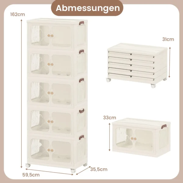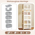 Knygų spintelė 59,5×35,5x162cm, baltos spalvos, puikiai tinka knygų ir kitų daiktų laikymui bei organizavimui. Didelė 265 litrų talpa ir patogus sulankstomas dizainas leidžia taupyti vietą ir lengvai pritaikyti spintelę įvairiose namų erdvėse.