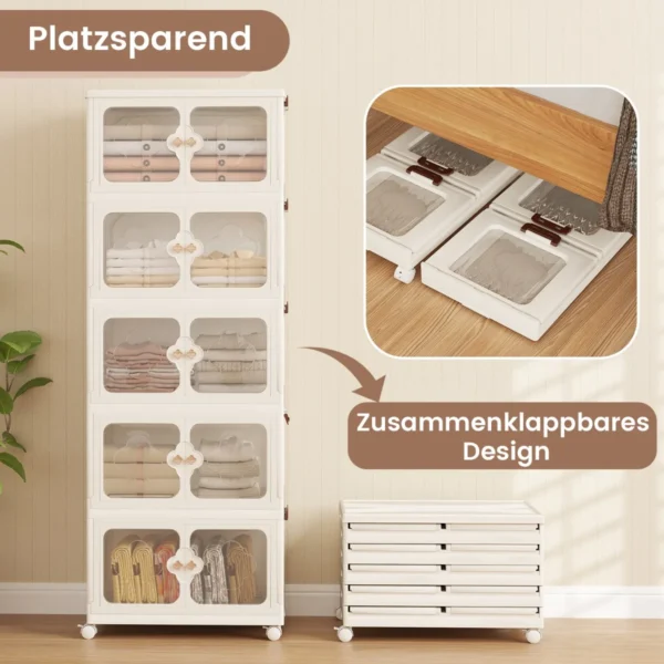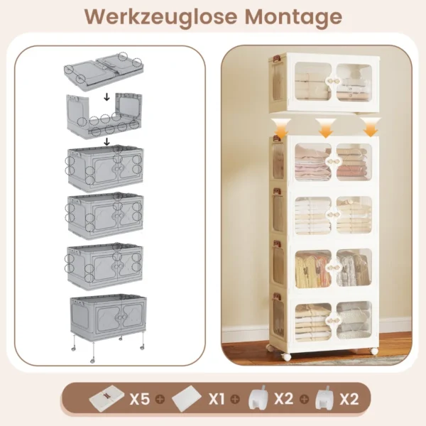 - Lengvas surinkimas be įrankių, o spintelę galima sulankstyti ir sukrauti, kai nenaudojama.