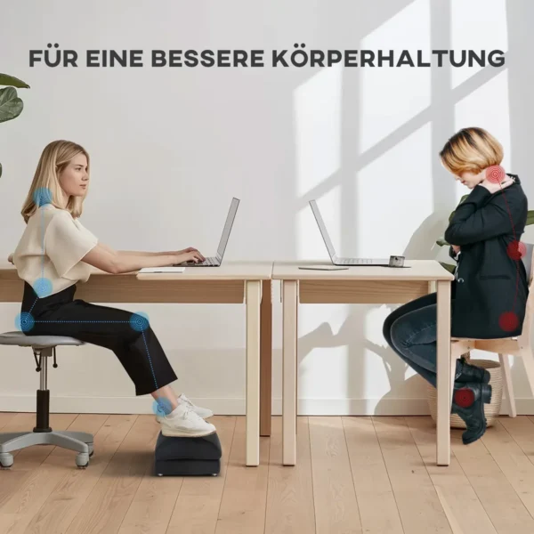 Atraskite maksimalų komfortą su HOMCOM kojų atrama. Lenktas paviršius puikiai dera su pėdos skliautu ir pagerina sėdėjimo laikyseną. Kokybiškas aksominio pojūtio rašomojo stalo atramos audinys ir storas, laikantis putplasčio užpildas siūlo ne tik atsipalaidavimą, bet ir universalumą – naudokite pėdų atramą kaip pagalvėlę keliams arba kaip siūbuojantį pedalą. Palepinkite save pertrauka ir mėgaukitės geresne savijauta!