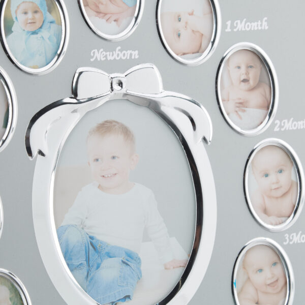 Šis elegantiškas ir stilingas koliažas yra puikus būdas įamžinti jūsų kūdikio pirmuosius metus. Su šiuo dekoratyviniu kūdikio paveikslų rėmeliu galėsite pristatyti visą savo mažylį svečiams, draugams ir šeimos nariams. Tai ne tik funkcionalus, bet ir estetiškai patrauklus būdas išsaugoti brangiausias akimirkas.