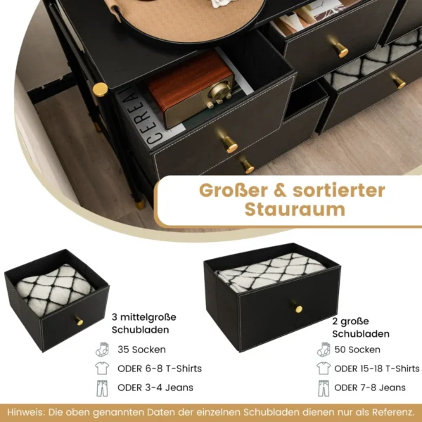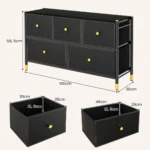 Komoda 100x30x58,5cm juodos spalvos yra praktiškas ir erdvus laikymo sprendimas jūsų namams. Ši komoda su medžiaginiais stalčiais puikiai tinka rūšiavimui ir daiktų tvarkymui miegamajame, svetainėje ar prieškambaryje. Jos metalinis rėmas užtikrina tvirtumą ir ilgaamžiškumą.