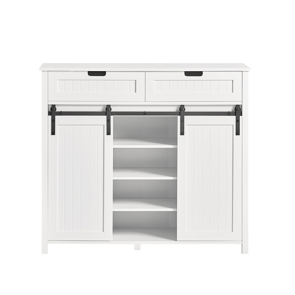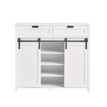 Ši elegantiška komoda 104x35x93 cm, baltos/juodos spalvos, yra puikus pasirinkimas jūsų svetainei ar prieškambariui. Jos stabilus dizainas ir funkcionalios stumdomos durys leidžia jums pasirinkti, ką norite parodyti, o ką paslėpti, ir tuo pačiu taupo erdvę.