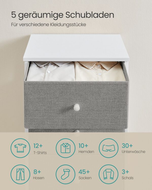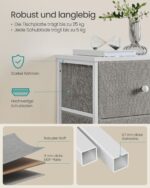 Pristatome Jums stilingą ir funkcionalią komodą, kuri puikiai papildys bet kurį interjerą. Ši komoda, pasižyminti subtilia pilkos ir baltos spalvų kombinacija, yra ne tik praktiškas, bet ir estetiškai patrauklus baldas.