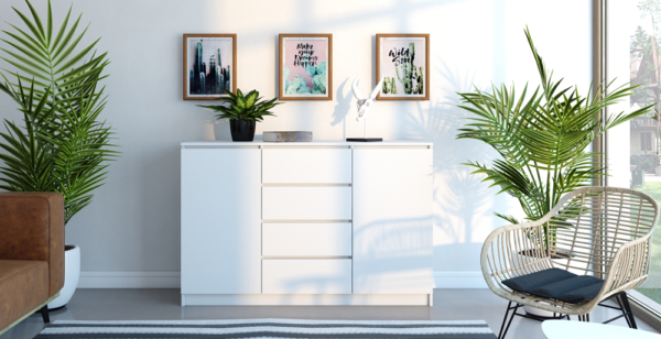 Komodos išmatavimai: aukštis – 97 cm, plotis – 140 cm, gylis – 40 cm;